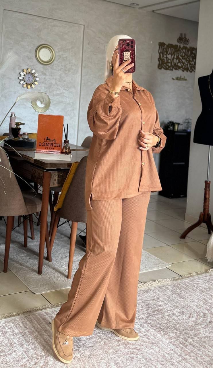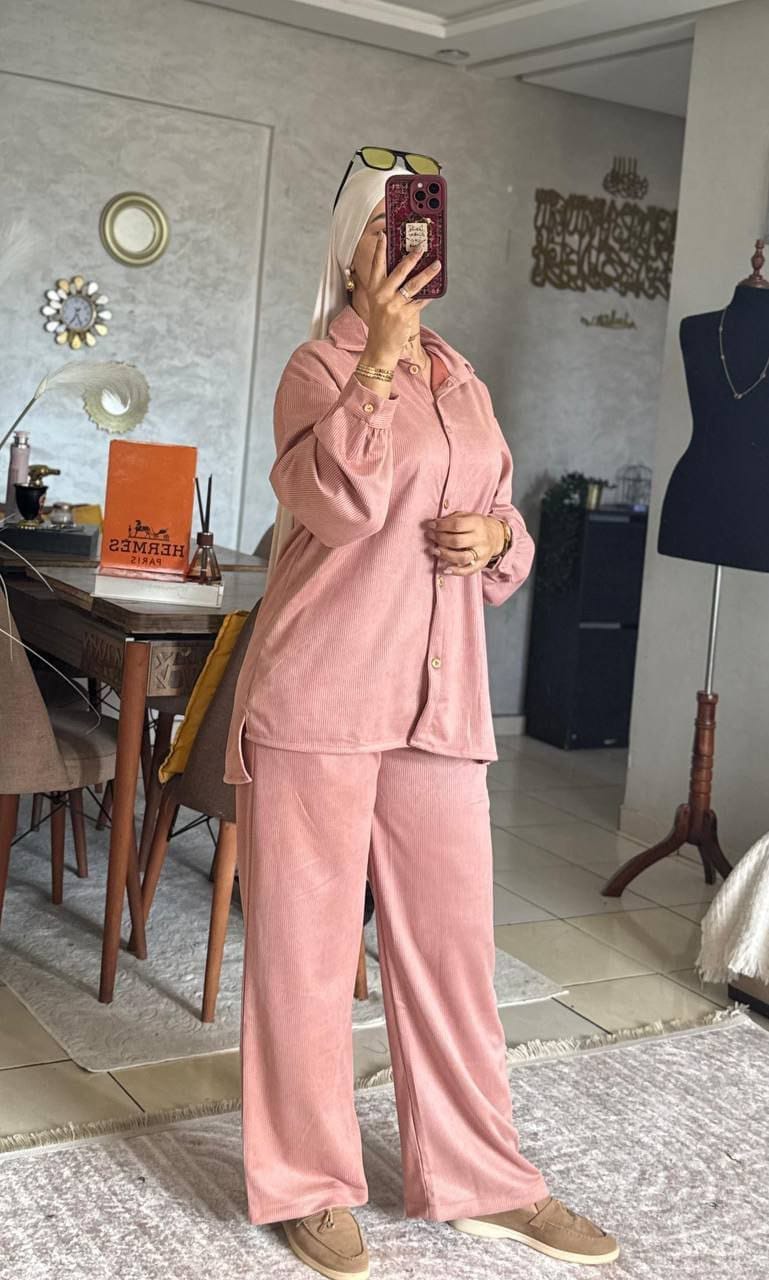 مع دخول أجواء الخريف، كل سيدة تبحث عن الإطلالة المثالية التي تجمع بين الدفء والأناقة العصرية. وداعاً لطبقات الملابس الكثيرة! نقدم لكِ طقم "Ensemble Velours Côtelé)"، الحل الأمثل لتكوني متألقة ومرتاحة في كل خرجاتك.
