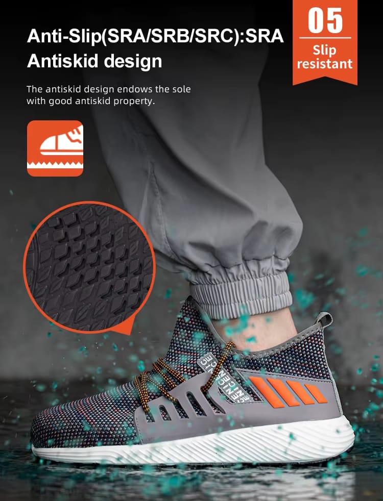 الفائدة: تحرك بثبات وأمان على الأسطح المبللة أو الزلقة، وحافظ على قدميك من المسامير أو الشظايا في بيئة العمل.