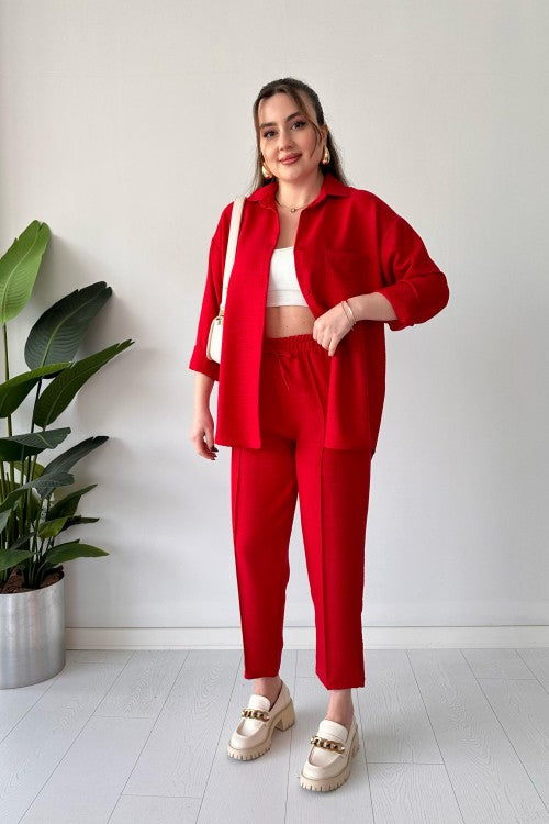 الستايل: طقم عصري من قطعتين (قميص وسروال) للمرأة التي لا تتوقف.